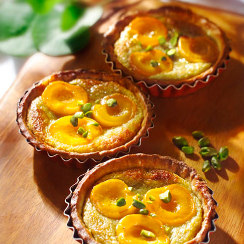 Place apricot halves on top of the cream and bake in a 180°C pre-heated oven for about 25 minutes till the top begins to brown slightly.