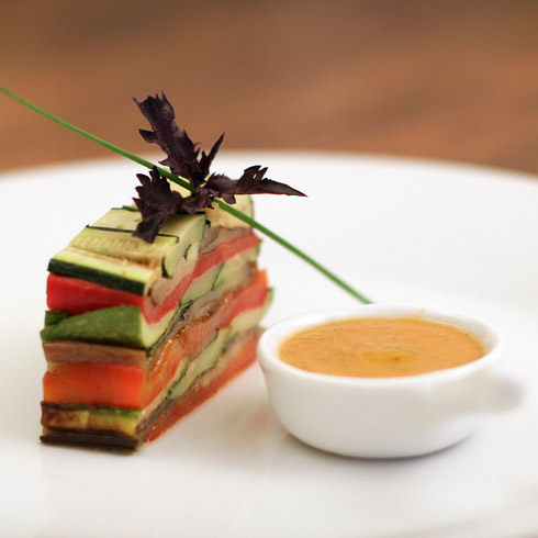 - Layer the slices of vegetables alternatively to the top